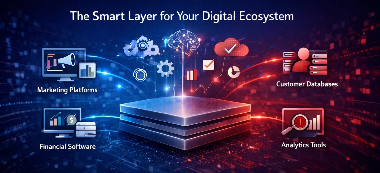 Rather than replacing the tools businesses already use, our platform acts as a smart layer that connects data from systems such as marketing platforms, financial software, customer databases, and analytics tools to generate actionable insights and streamline operations.